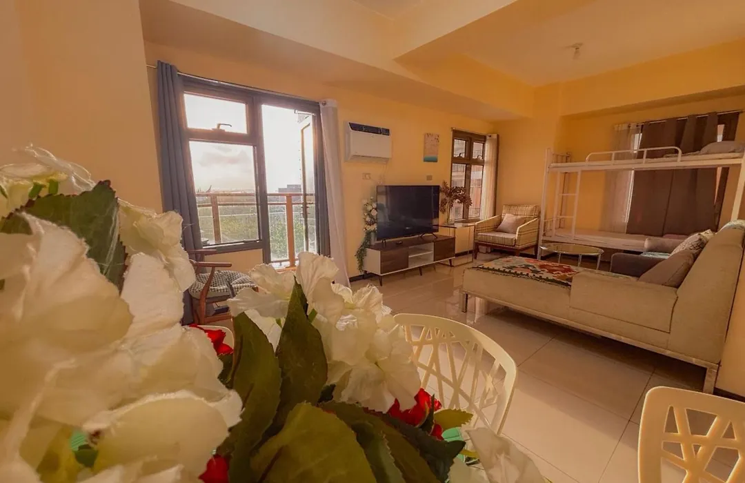 Radiance Manila Bay 2 Bedroom & 3 Bath apartment includes a sitting area, a living room, and a kitchen with air conditioning for utmost comfort. This apartment is equipped with a bathroom that features bath sheets. You'll also come across a separate toilet, a shower, and a washing machine.